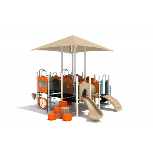 Maximo playgrounds are artistically crafted with your choice of 5.0" OD galvanized steel or aluminum support posts which are, along with all of the steel handrails, barriers, gates, and climbers, coated with a baked-on polyester powder coat finish for a lifetime of protection against the elements. All steel decking and stairs are encased in a longĀ­lasting PVC coating. The three-dimensional plastic slides, panels, roofs, and climbers are rotationally molded using virgin compounded resins that feature greater UV breakdown resistance over dry blended resins.The HOPE sheet plastic climbers and activities are specifically manufactured at the factory for high-quality control and not purchased from a supplier.