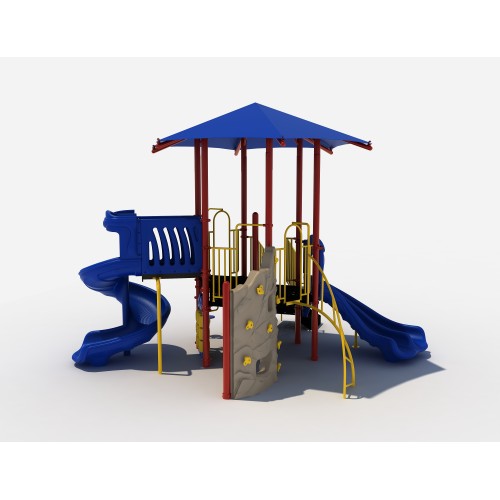 Maximo playgrounds are artistically crafted with your choice of 5.0" OD galvanized steel or aluminum support posts which are, along with all of the steel handrails, barriers, gates, and climbers, coated with a baked-on polyester powder coat finish for a lifetime of protection against the elements. All steel decking and stairs are encased in a longĀlasting PVC coating. The three-dimensional plastic slides, panels, roofs, and climbers are rotationally molded using virgin compounded resins that feature greater UV breakdown resistance over dry blended resins.The HOPE sheet plastic climbers and activities are specifically manufactured at the factory for high-quality control and not purchased from a supplier.