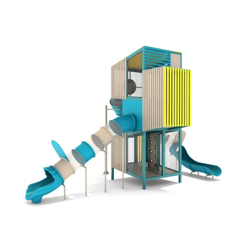 Name: Caspers Condo Series: Magnus Climbers Age Group: 5-12 # of Play Activities: Child Capacity: 36-40 Use Zone: 48'-8" x 34'-8" Max Fall Height: 21'-8" Equipment or Structure Size: 34'-6" x 21'-7" x 21'-8" Structure Weight 11000
