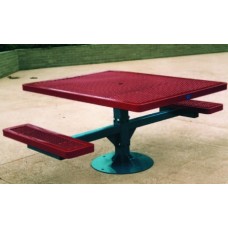 46 inch Square Table, 3 Attached Seats, Rounded Corners, .75 inch number 9 Expanded Metal, 4 inch Pe..
